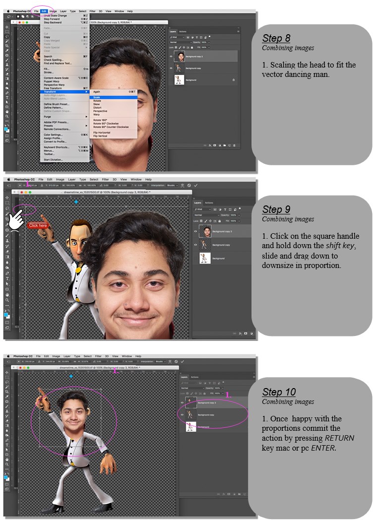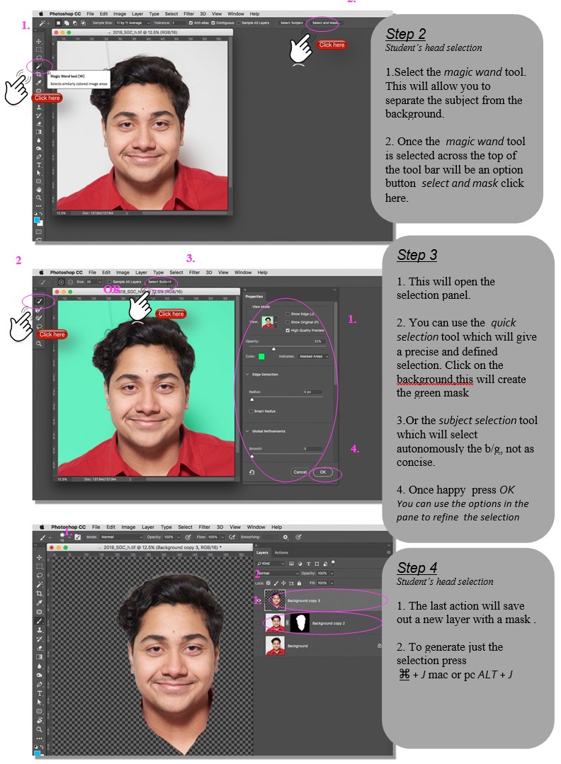 It is important to photograph the students against a clean unencumbered background as this will make the removal of their heads, digitally speaking, a much easier and faster process in Photoshop