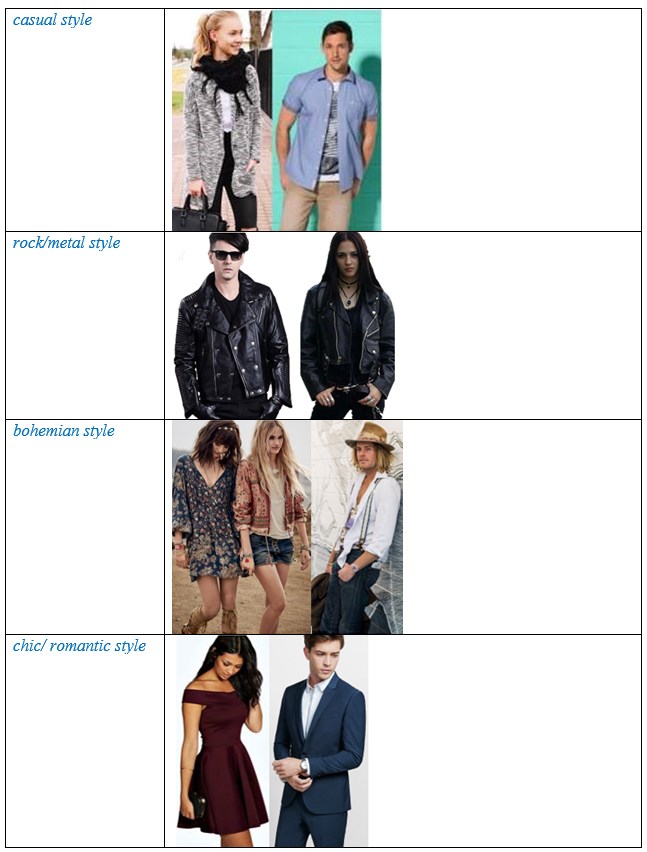 After the pupils have chosen some pictures and a clothing style, the teacher asks a few pupils why they chose those pictures or that specific style. Then, the teacher asks the pupils if they have a question for a classmate who likes another clothing style than they do. This way the pupils have a short class discussion about different clothing styles and why people like them.