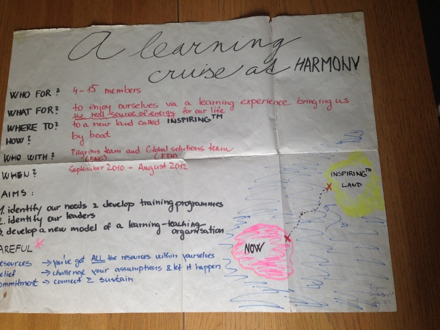 A poster worked out by Harmony trainers at the Pilgrims training led by Kevin Batchelor at Harmony in Slovakia in August 2010.