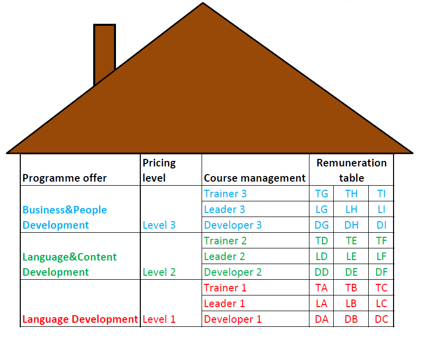 It also invites trainers to grow in managerial terms, i.e. at the same time becoming Trainer-Leaders (junior managers) and Trainer-Developers (senior managers).