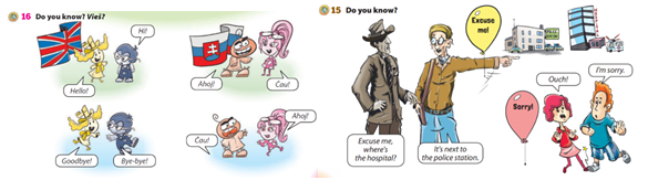 From the sociolinguistic and pragmatic competences examples from the A1 level of the use ‘please’ and ‘hello’ are given. The word ‘please’ is one of the first words to be taught at any age level. It can be often seen how people misuse the word ‘please’. They translate and use it the same way as in their own language. For example, Slovaks use ‘please’ (prosím) as a response to ‘thank you’, which is wrong in English and ‘you’re welcome’ should be used. ‘Please’ is also inappropriately used instead of ‘here you are’ when giving something to somebody. As the word ‘please’ is among basic vocabulary at the A1 level, its use needs to be taught properly right from the beginning and not to be re-taught at later stages of proficiency. Another example of basic vocabulary used in social contexts are greetings. I have experienced many times that learners use greetings the same way as in Slovak. They use the formal translation of a formal greeting ‘good day’ (dobrý deň), which is a very formal form of greeting hardly ever used in the English language. Also the greeting of ‘hello’ (ahoj) can be misused. It is used by Slovak learners like it would be in Slovak, not only upon arrival but also for departure instead of ‘good bye’. Another example is the use of ‘excuse me’ and ‘sorry’, which is expressed in Slovak by one word (prepáč) and learners need to acquire the correct use of these expressions.