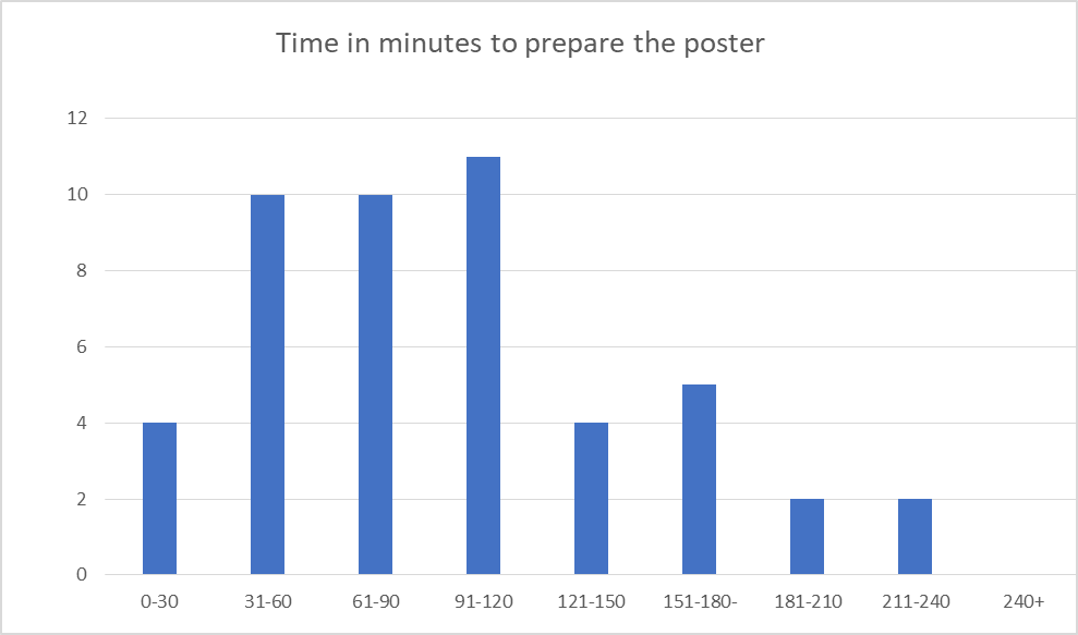 The graph clearly shows that, although a few students took more than three hours to prepare their posters, the majority of students took between half-an-hour and two hours to prepare theirs.