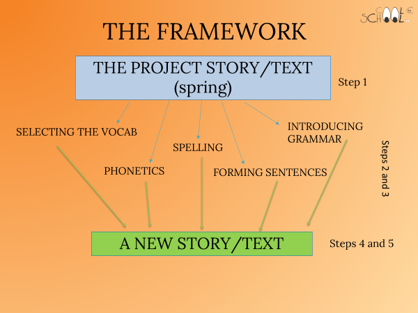 The framework is made up of Project Steps (Illustration 1), which systematically cover all language skills, focusing equally on communication and socialisation. The approach follows natural-like ways of correspondence wrapped in foreign language activities.