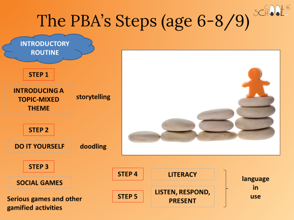 The Project Based Approach (PBA) is an approach with a given framework (a ‘how to do it’) in which the activities are organised in such a way as to support one another from both a language and a social perspective, bearing in mind the ‘big picture’ (the aims).