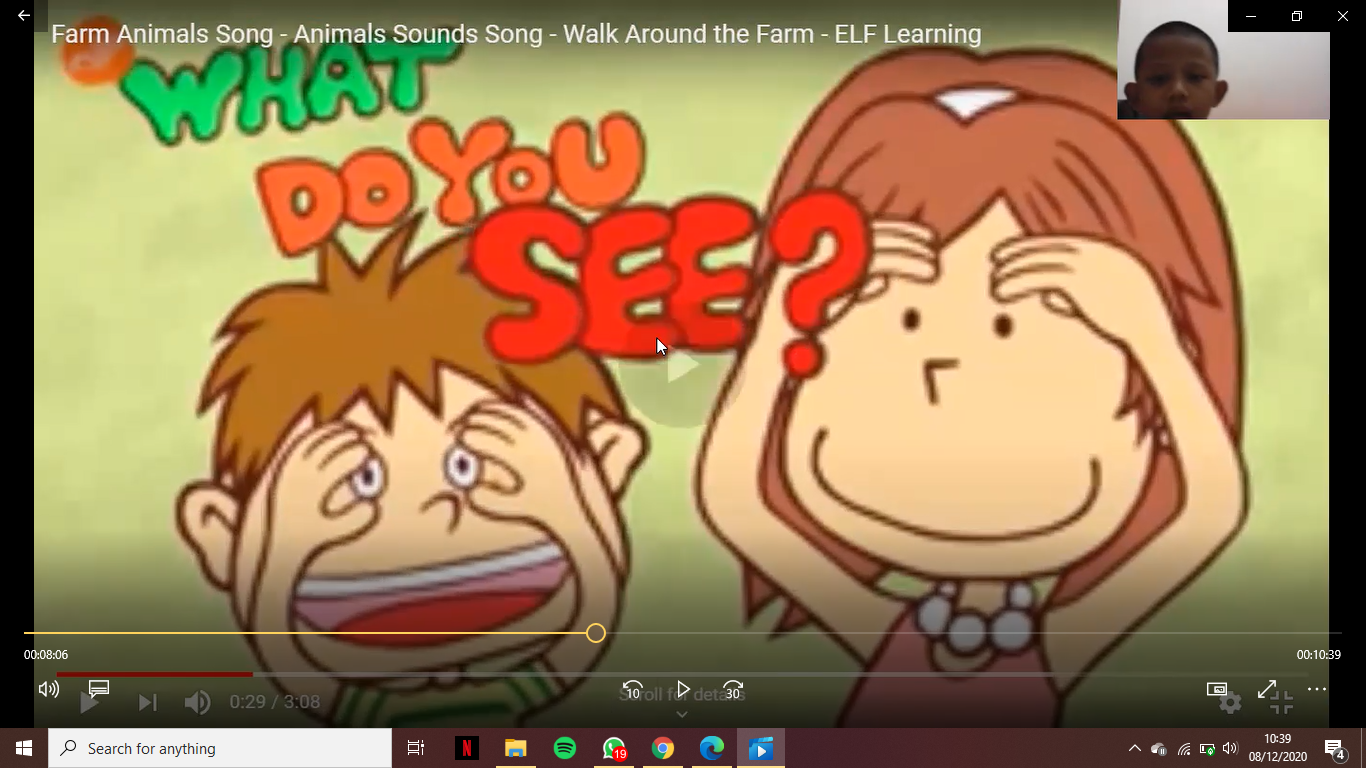 Eden spelling the animal found in the photo captured in the screenshot in ppt. Eden is very excited when I look at the YouTube page in the open, then I showed a video about animals on the farm, for the first activity like that before it is over, then go through the activity that tells the story with the video described on YouTube. Before that, I asked Eden “have you ever met an animal before on a farm?'' and he said yes with his innocent answer. Eden tracks what animals are on the farm when he enters the video, according to the video I put bellow: