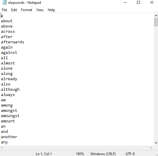 The final pre-processing step employed is the Filter Stopwords (Dictionary) operator. This is done to remove all the tokens equal to the stopwords from the given text file and can be accomplished by listing down words that are assumed to be unnecessary. Another option is to download text file or document file containing pre-identified English stopwords via Internet. Take note that if the document is not in text file format, then it must be converted into that format because it is the must-be-done requirement of RapidMiner9.7. The latter option was employed and verified the content just in case that there are words that needed to be included or removed. In this paper, adjectives and some pronouns (such as he and she) were not included in the list of stopwords.