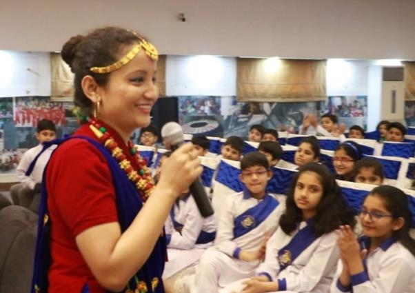 Sikha Gurung from Nepal on a storytelling visit to school students in Pakistan