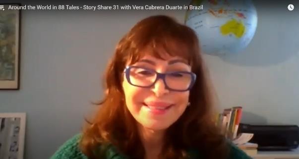 Dr Vera Cabrera Duarte storytelling globally online as part of Around the World in 88 Tales