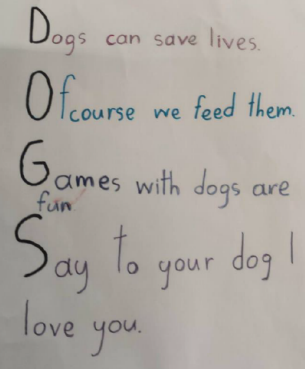 Last but not least, Kiki Xynta (GlobalLand Language School) involved her A2 students in a project aiming to show how companion dogs contribute to human happiness for different groups of people: individuals with disabilities, children, prisoners, elderly people and patients. Throughout the process, the students also gained valuable insights into the importance of adoption and our responsibilities towards our companion animals. They participated in a variety of tasks including writing an acrostic poem and a letter to the Mayor. The purpose of the letter was to draw the Mayor’s attention to the pressing issue of stray dogs being poisoned in the streets of their town, and to make a plea to the Mayor for public support and protection of these animals from such inhumane practices.